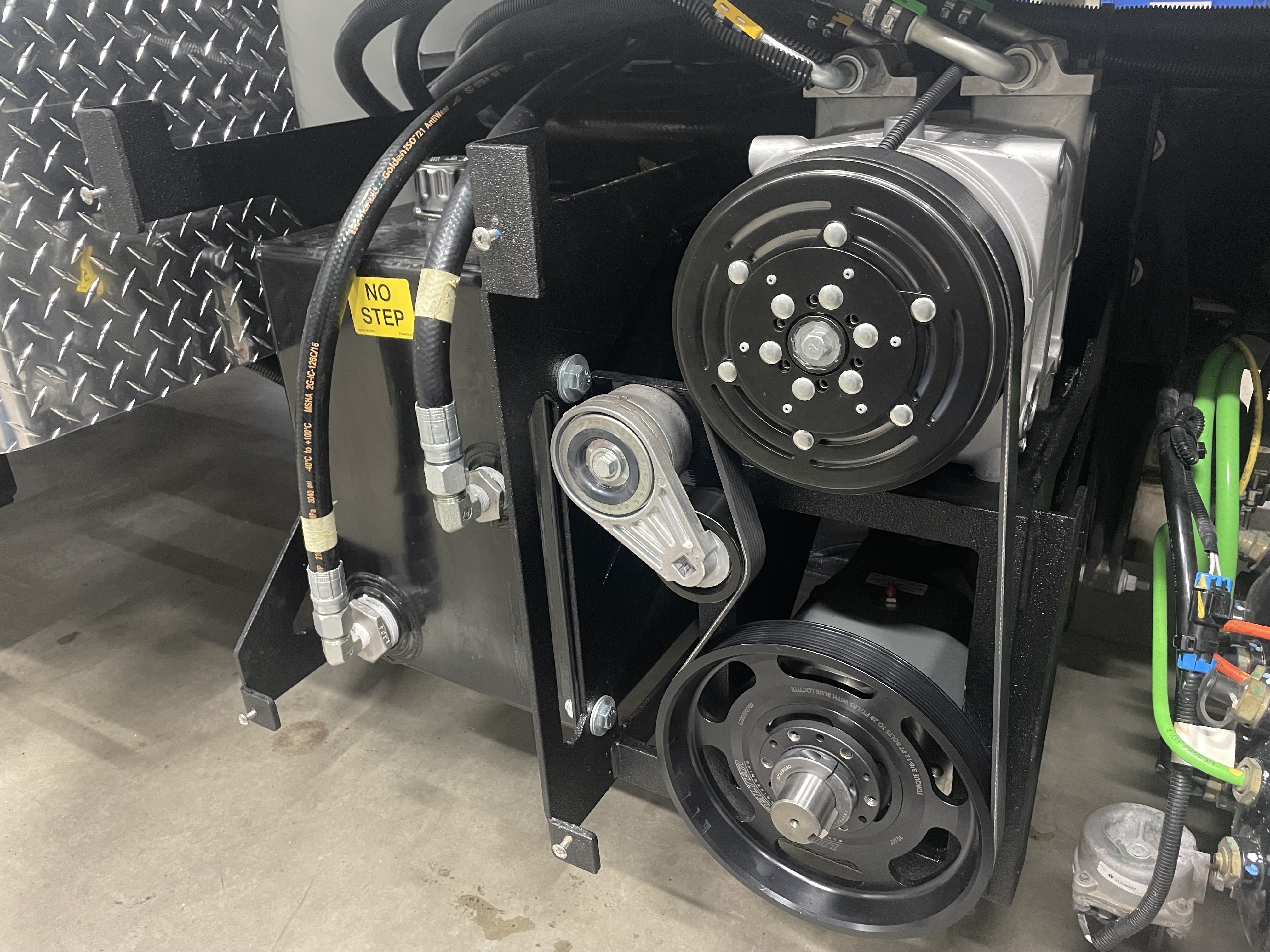 While working at BraunNW a need arose for a high capacity HVAC cooling system for a large prisoner transport vehicle. I was approached to design the bracketry, belt drive, and help with the hydraulic system.