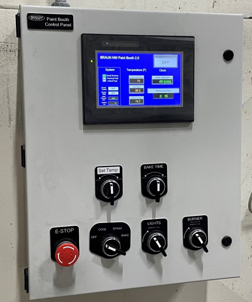 While working at BraunNW our 20yo industrial paint booths were regularly breaking down and the controls were highly unreliable. Rather than purchasing new booths costing millions of dollars we rebuilt our old ones with custom controls. At the beginning of this project I knew the theory of controls and PLC based automation but had no experience. By the end I was able to produce a highly effective system that has proven to be more reliable and user friendly.